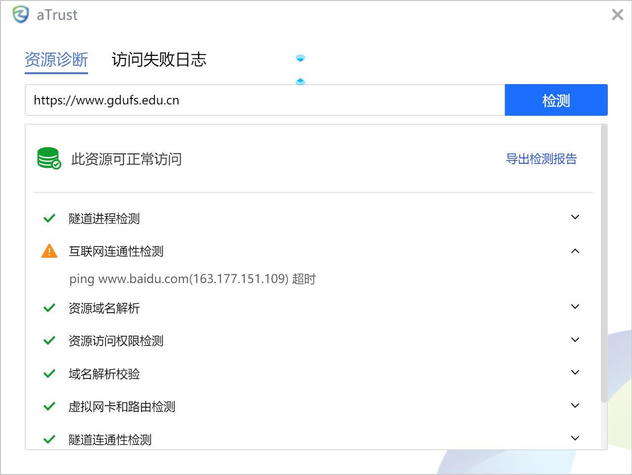 4. 将检测结果截图给相关管理员排查。