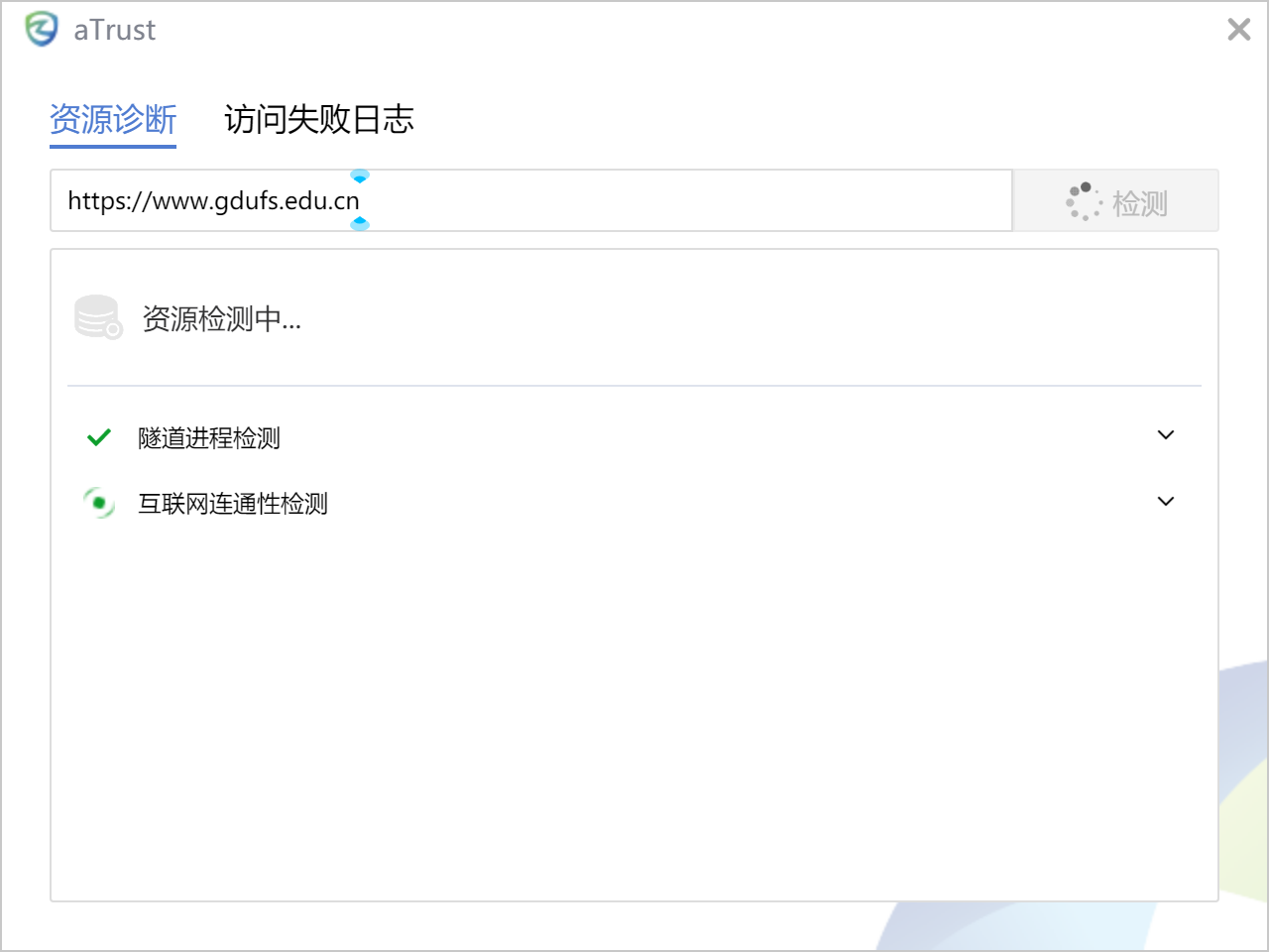3. 输入需要访问的资源路径,点击检测。
