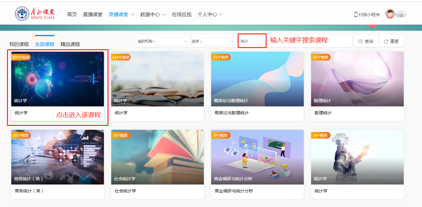 (2)找到想要观看的课程名称,点击进入“进入课程主页”