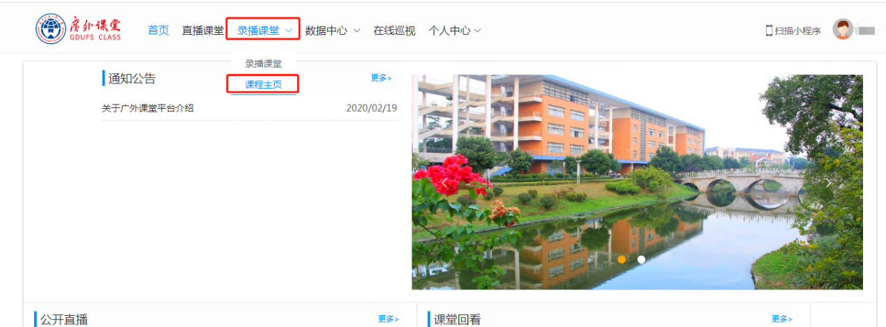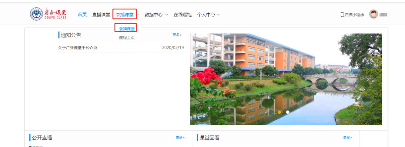 (1)在首页的“录播课堂”-“课程管理”,点击进入;