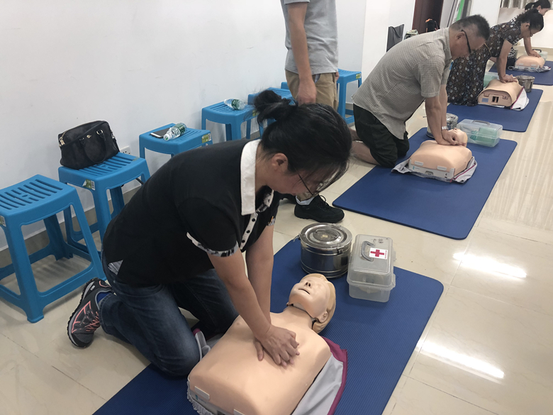 技能培训导师为教育技术中心党员作急救培训