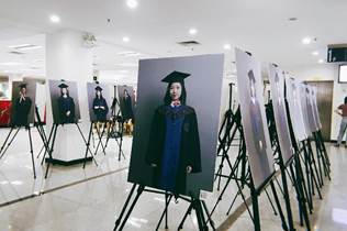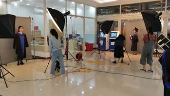 “《留下大学最经典的记忆》2019大学生创业训练”项目是由实验教学部储晓戈老师指导,其团队是经过五个教学班的发动动员,100多名同学自愿报名,同时经过提交作品竞标筛选,最后精选出来的新闻传播学院的钱咏琪、陈妍如、章怡晴、曾颖妍等4位同学组成。该项目的目的旨在依托通过创业训练项目建设,为粤港澳大湾区的建设培养专业影像前沿人才。同学们先期利用业余时间,经过老师手把手的精心指导和实践训练后,在南北校先后拍摄了大量的毕业班同学的专业人像照片。目前在展览中呈现在大家面前的作品是她们在拍摄了近千幅照片中反复精选,并经过精细的后期处理后,精选出50多张作品,是她们以创业训练成