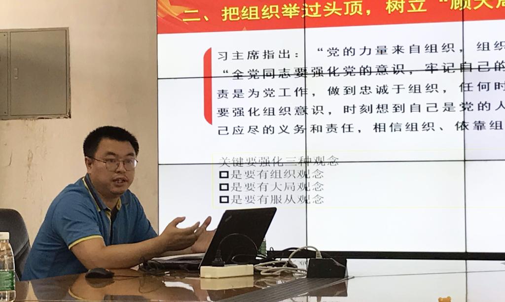 接着,廖信海做《追初心,明使命——树起新时代合格党员好样子》的主题发言,他分别从追根初心,回望党员开始的样子、对照使命,查找党员不好的样子、立足本职,做新时代党员好样子三个层次,结合大量的实例深入展开阐述,提出树起新时代合格党员好样子:一是把忠诚装心中,树立“讲政治、有信仰”的样子,二是把组织举过头顶,树立“顾大局、识大体”的样子;三是把责任扛肩上,树立“勇担当、重实干”的样子;四是把底线踩在脚下,树立“严纪律、守规矩”的样子。对新时代合格党员的要求做了明确的阐述和要求,使支部党员在思想、政治、行动上有更清晰的学习方向。