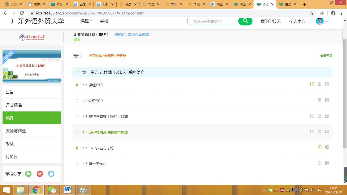 中心教师们完成了多种在线教学平台的测试,对比了“中国大学MOOC”、“雨课堂”、“腾讯课堂”和“腾讯会议”等不同平台之间的差异和特点,最后确定《企业资源计划(ERP)》以SPOC课程为主要形式,结合“雨课堂”、“腾讯会议”的相关功能进行直播、答疑、作业提交等开展教学。