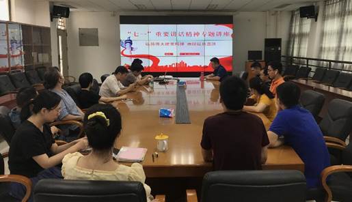 为扎实推进党史学习教育,切实做到学党史、悟思想、办实事、开新局,2021年9月22日上午,网信中心第四党支部在六教A421召开“不忘初心跟党走 继续前进铸辉煌”为主题的党史学习教育推进会暨党总支委专题培训会,党总支委廖信海做题为《弘扬伟大建党精神 赓续红色血脉》专题讲座。会议由赖妙芳主持,第四支部全体党员参加。
