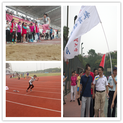 本届校运会在大学城校区举行,在隆重而热烈的开幕式后,各项竞赛和趣味项目有条不紊地陆续开展。中心运动健儿发扬拼搏精神,在多项竞赛中取得骄人成绩:周安宁老师获男子中年组铅球冠军,刘华平老师获男子中年组立定跳远冠军;刘晓丽老师获女子青年组100米亚军,刘巧玲老师获女子青年组铅球亚军;康翔、黄国新老师分别获男子中青年组跳远的第二名和第三名,吴瑞华老师夺得男子青年组跳远、100米两项竞赛的第三名;由陈恩帆、刘晓丽、吴瑞华、麦耀翀组成的4*100米接力队,力克继教学院等强劲对手,勇夺该项目的冠军。此外,何英、练诗韵、区慧恩、卢艾、王勇、钟伟森、尹美林、刘江辉等多位老师积极踊跃地参加了竞赛项目,取得了好成绩、实现了个人突破、为集体增光。