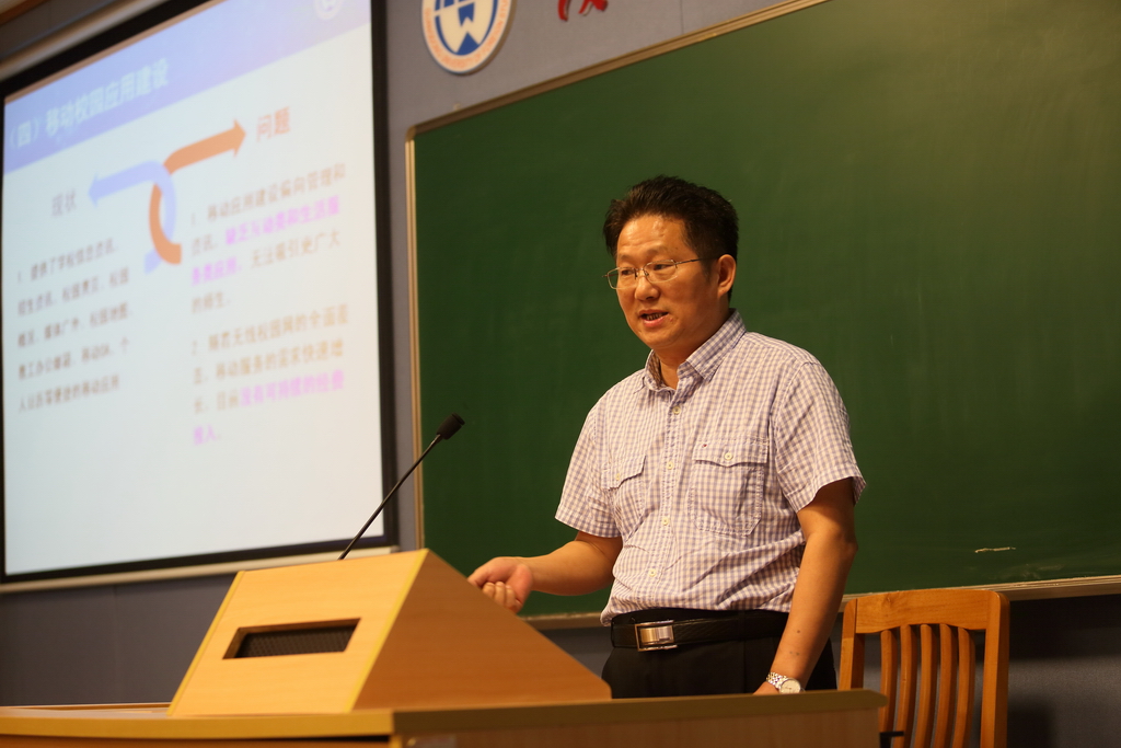 教育技术中心主任乔万林围绕学校网络与信息化建设现状、网络安全与信息化工作现状及存在问题、贯彻落实省教育厅相关会议精神,以及具体措施等方面作了专题发言,指出网络与数据中心机房建设、数据共享平台建设、综合服务与决策支持平台、移动校园应用建设、网络安全责任落实、网络信息安全工作等方面存在的问题,强调学校网络安全与信息化工作必须加强制度建设,建立责任追究制度和同步机制,规范校园网行为,实施工作责任制和责任追究制。并对今年的工作进行了通报,将进一步开展网络安全等级保护各项工作;加强学校网站和信息系统规范管理;加强网络安全监测预警,提高网络安全防护水平;建立应急处置工作渠道等。