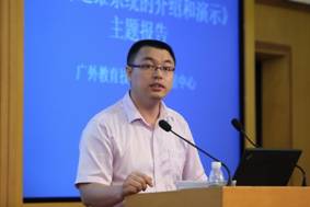 左上:乔万林作主题报告 右上:廖信海进行系统演示