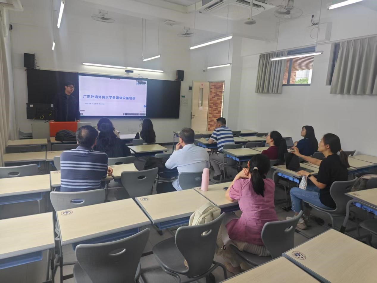为进一步推动智慧教室在教学实践中的应用,提升教师的信息化技术运用水平,现代教育技术中心联合教务部于4月25日下午,在白云山校区第一教学楼318开展了智慧教室操作培训。来自金融学院、英文学院、亚非语言文化学院、法学院、东南亚学院等11个学院教师参加。