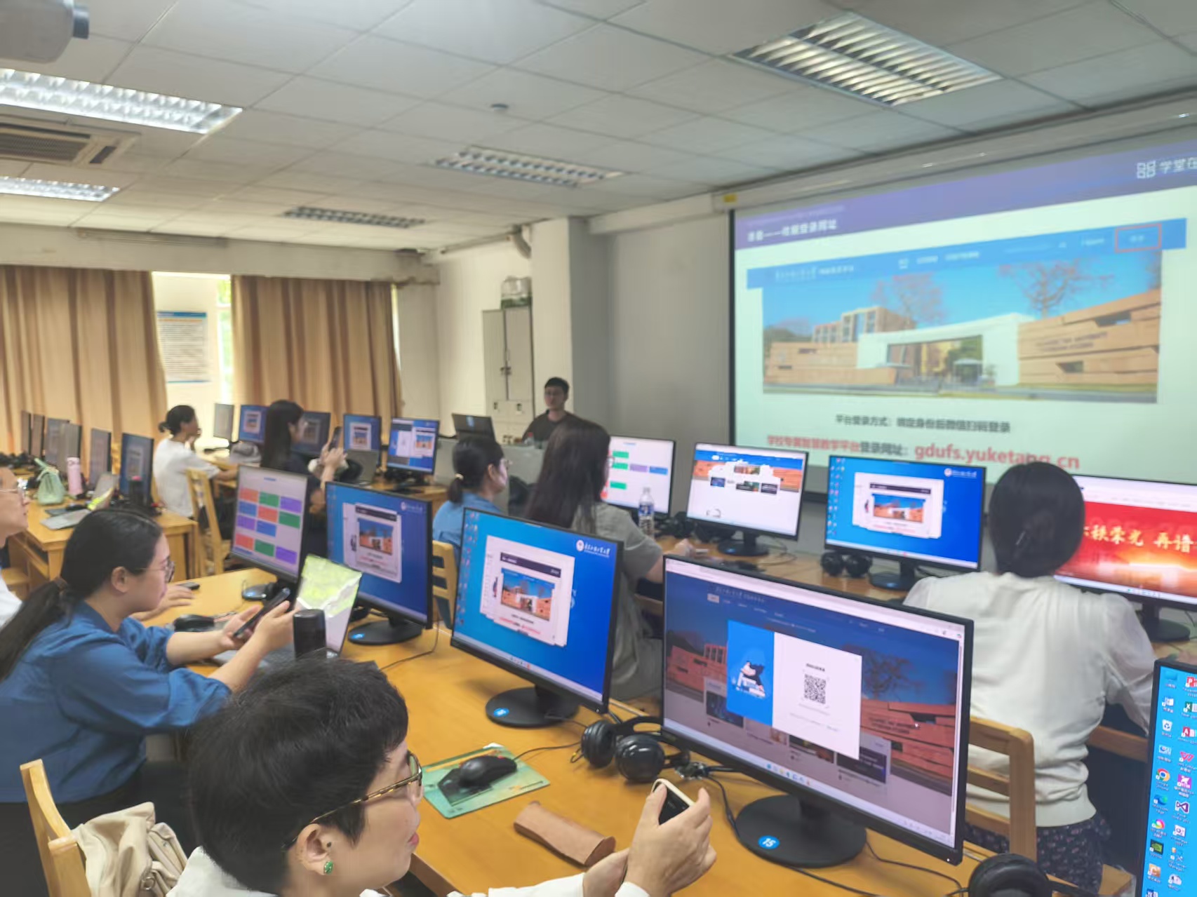 为推进人工智能与教育教学深度融合,助力教师掌握智慧课堂实践技能,现代教育技术中心联合教务部举办了第三期“AI智慧课程工作坊”系列培训。本次培训分为线上直播与线下实操工作坊两大模块,共同聚焦AI课程开发与教学应用,吸引来自亚非学院、高翻学院、英教学院等52个学院和单位的460名教师参与。