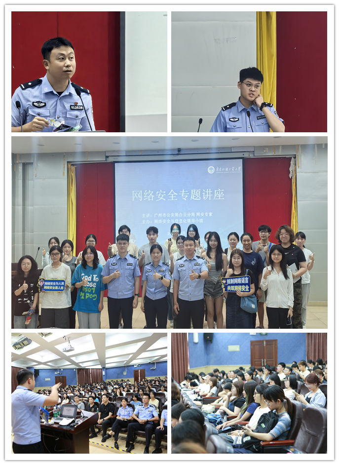 9月18日,广州市公安局和白云分局网安大队的李警官、王警官等一行网络安全专家在白云山校区为师生作专题讲座,深入分析当前网络安全形势,解析网络安全案例,以生活和学习中紧密相关的个人信息保护、密码安全等知识点展开,通过触目惊心的数据和生动的案例分析,瞬间吸引了全场的注意力,网络安全专家以案释法、以案说纪、以案为鉴,引导师生增强网络安全法律意识,有效提升了师生的网络安全素养。