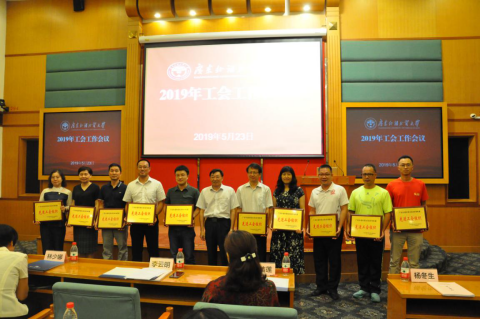 2019年5月23日,校工会工作会议在北校区国际会议厅隆重召开。会议表彰了10个2018年度工会工作先进集体、42名优秀工会干部、40名优秀职工之友、148名工会工作积极分子,7个2018年工会优秀品牌活动以及2018年校运会获得教工团体总分前10名的二级工会。