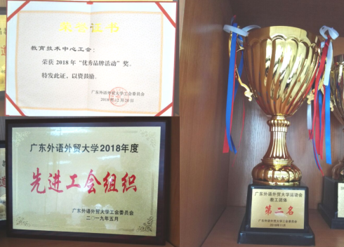 因党政领导高度重视、全体员工齐心参与、全体运动员努力拼搏,中心工会在本次表彰活动中的所有奖项均有斩获,取得了“全满冠”的优异成绩!其中:因成绩突出再次荣获工会先进集体称号(连续第三年); “同心谋发展”活动荣获校优秀工会品牌活动称号;以创纪录的成绩勇夺2018年校运会团体总分第二名。梁俏获评优秀工会干部,陈平仲获评优秀职工之友,谢建国、陈恩帆、李苏梅、刘晓丽、康翔五位同事获评工会工作积极分子。
